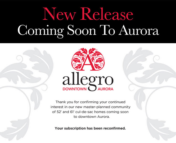 Allegro is the height of architectural and design excellence in what is quickly becoming downtown Aurora’s most prestigious new home locale.