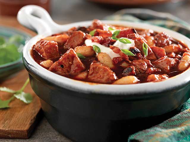 Well if you’re going to do a pork and bacon chili, you’ve got to go to the source. Pork Be Inspired for this recipe, and let’s face it, bacon and chili belong together. Smoky Pork, Bacon & White Bean Chili recipe