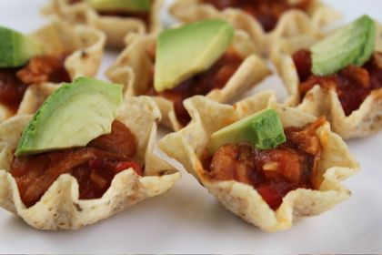 This white bean chicken chili (our feature photo above) comes with a kick of chipotle. The added bacon makes for a real crowd pleaser. Serve this up appetizer-style in Tortilla Scoops, just make sure you have plenty of napkins. Chipotle Chicken Chili recipe