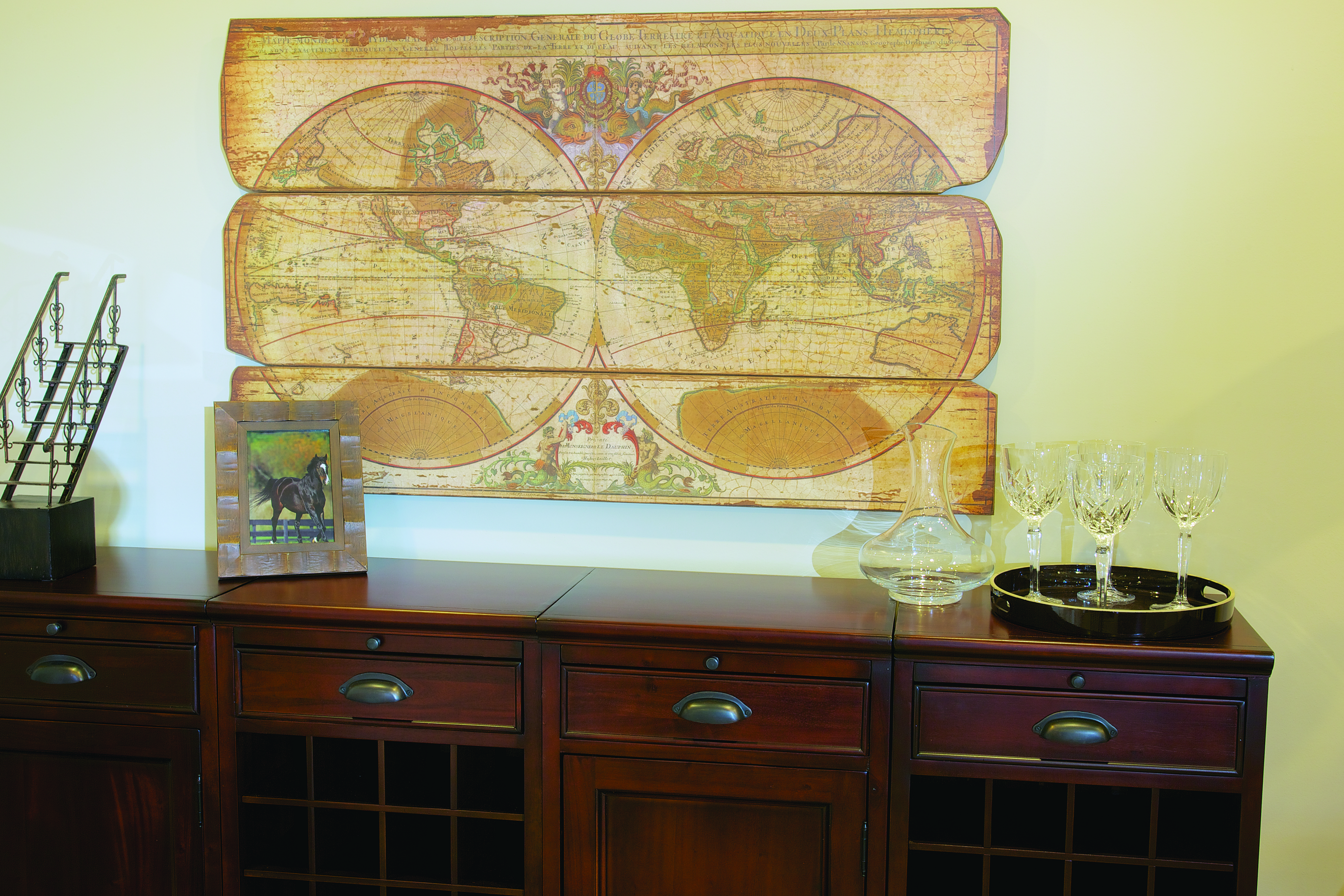 Dining Room Map Published August 14, 2017 at 4831 × 3221 in Four Ways to Dress Up Blank Walls ← Previous Next → The world map adds charm to any dining room and serves as reminder of places you’ve been or want to visit.world, map, home decor, design, dining room