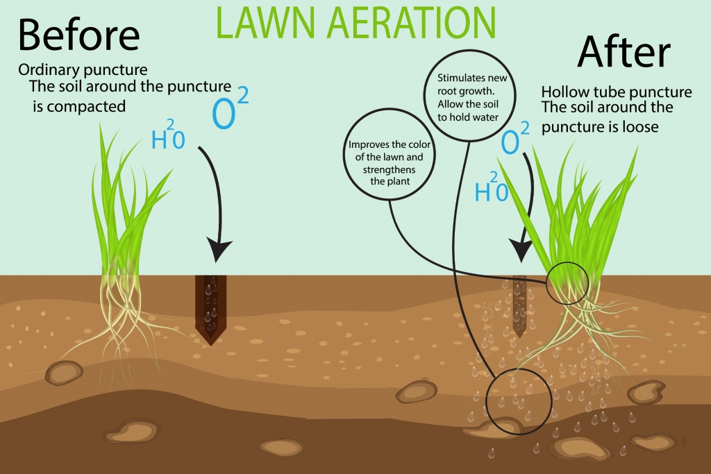 You can rent aerators at your local hardware store or garden centre, but be sure you get one that actually removes plugs, rather than just poking holes in the soil.