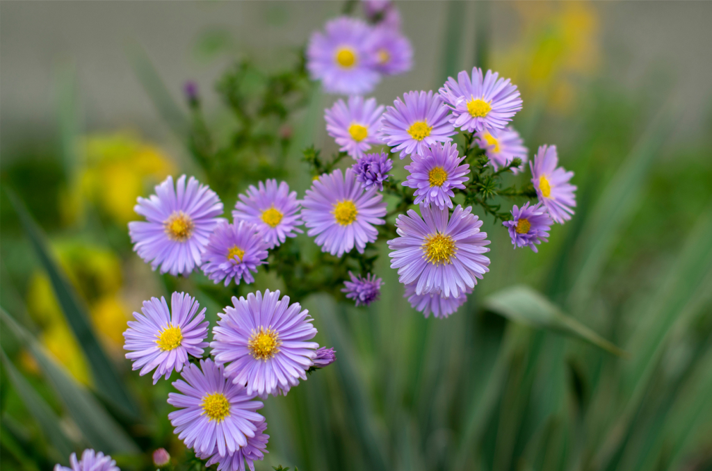 Asters are perennials that fill our autumn with colour. These perennials bloom around the same time that mums do, they like full sun, and are hardy in almost every climate. These late bloomers attract pollinators and come in shades of blue, lavender, pink and purple.