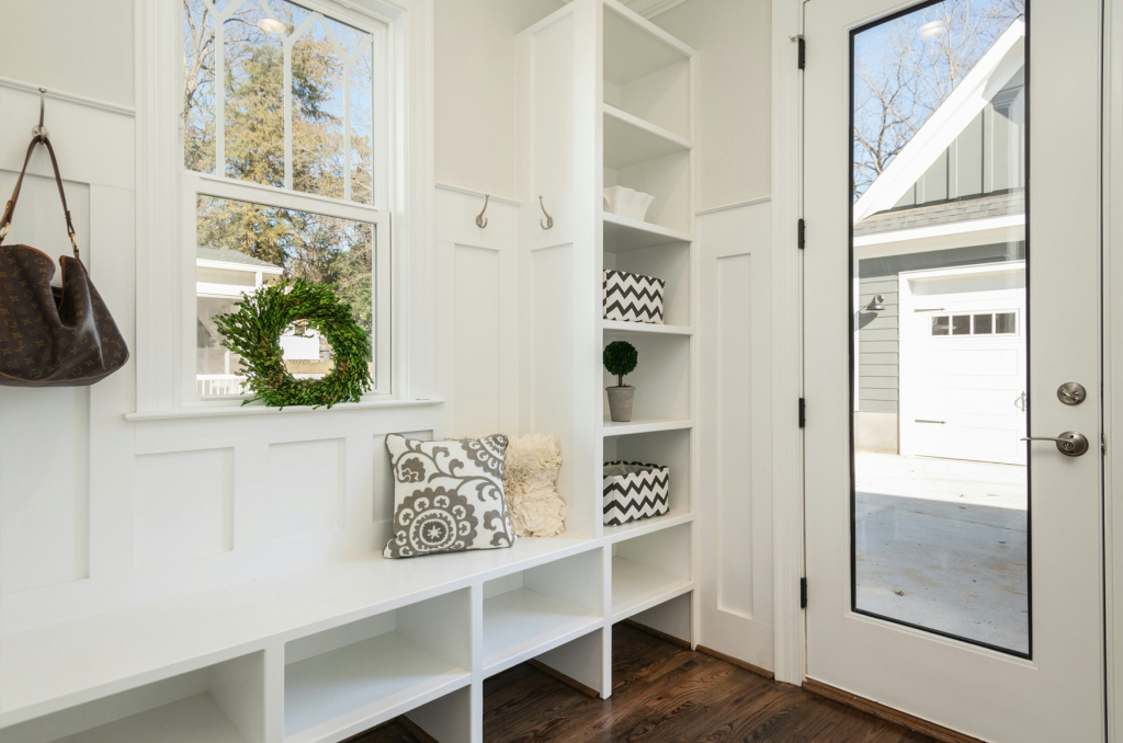 Mudrooms serve as a transitional space between the outside and in, allowing family members to neatly store outdoor gear, shoes, and coats, etc. This helps keep the rest of the house clutter-free.