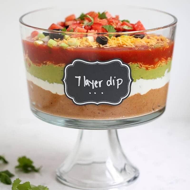 Seven layer dips make for a great party snack, via IHeartNapTime