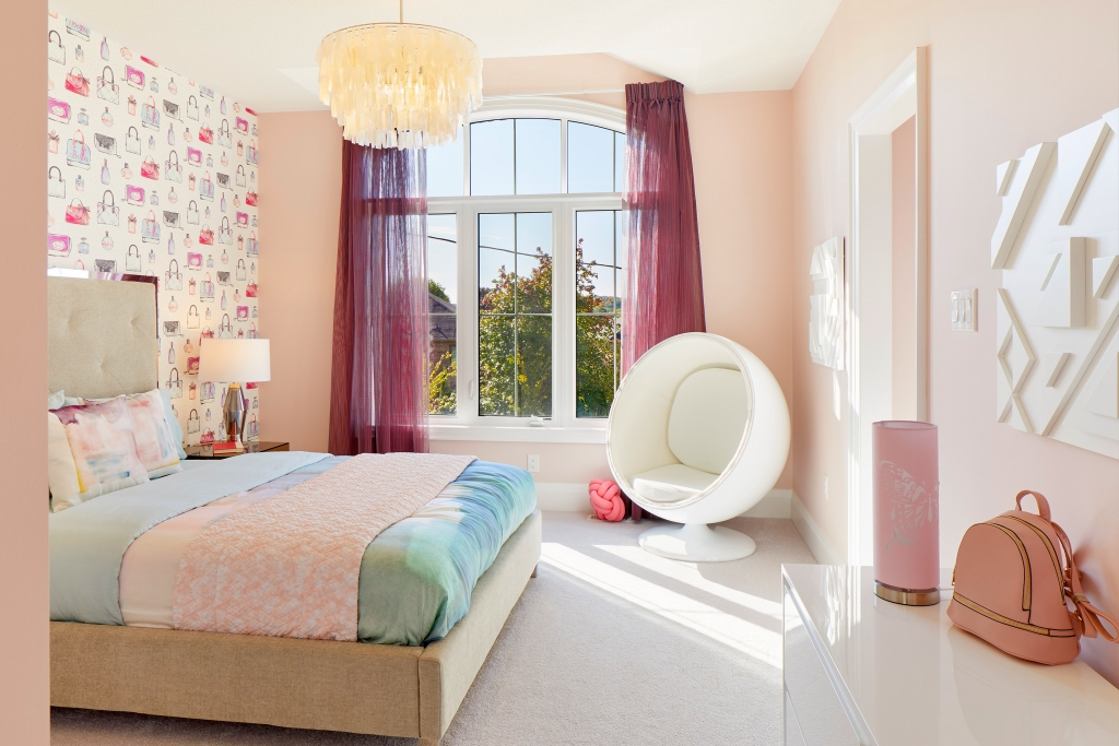 The calming nature of pink makes it ideal for bedroom, like this one in our Allegro model home