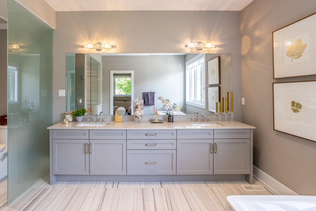 The timeless appeal of gray works well in this beautiful ensuite at Allegro in Aurora