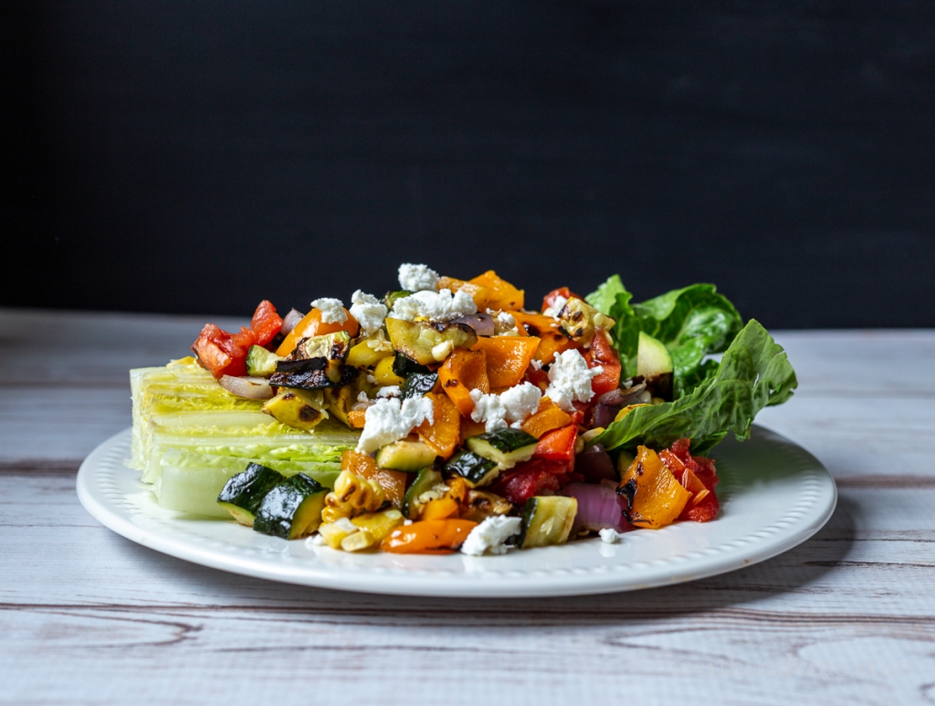 These grilled veggies work well as a salad or wrapped in pita bread as a main course.