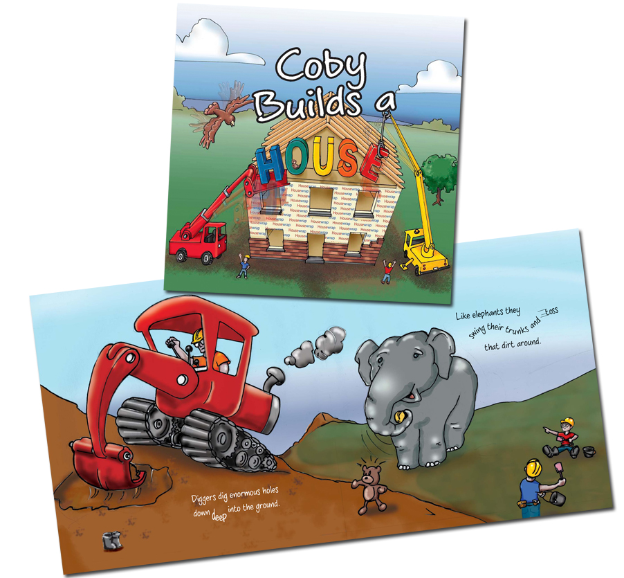This visit, and the many more that would follow, ignited the boys’ curiosity and produced lots of amusing ideas about work on a building site. Then, in 2010, their insights became the inspiration for Coby Builds a House – an illustrated story about building a house, as told from a child’s point of view by one brother to another.
