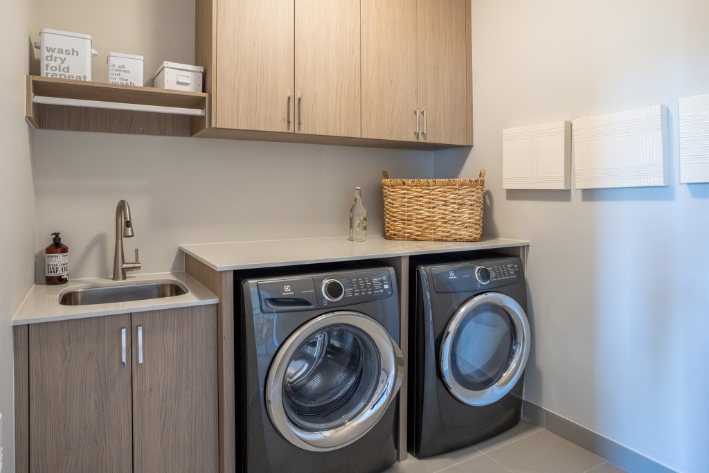 A standard in our Allegro homes, the second floor laundry means no more lugging laundry up and down the stairs. Dirty clothes, sheets, and towels that make up 95% of our laundry are generated on the second floor. It also eliminates the use of hampers in bedrooms/bedroom closets. The result – doing the laundry takes up less time and less space.