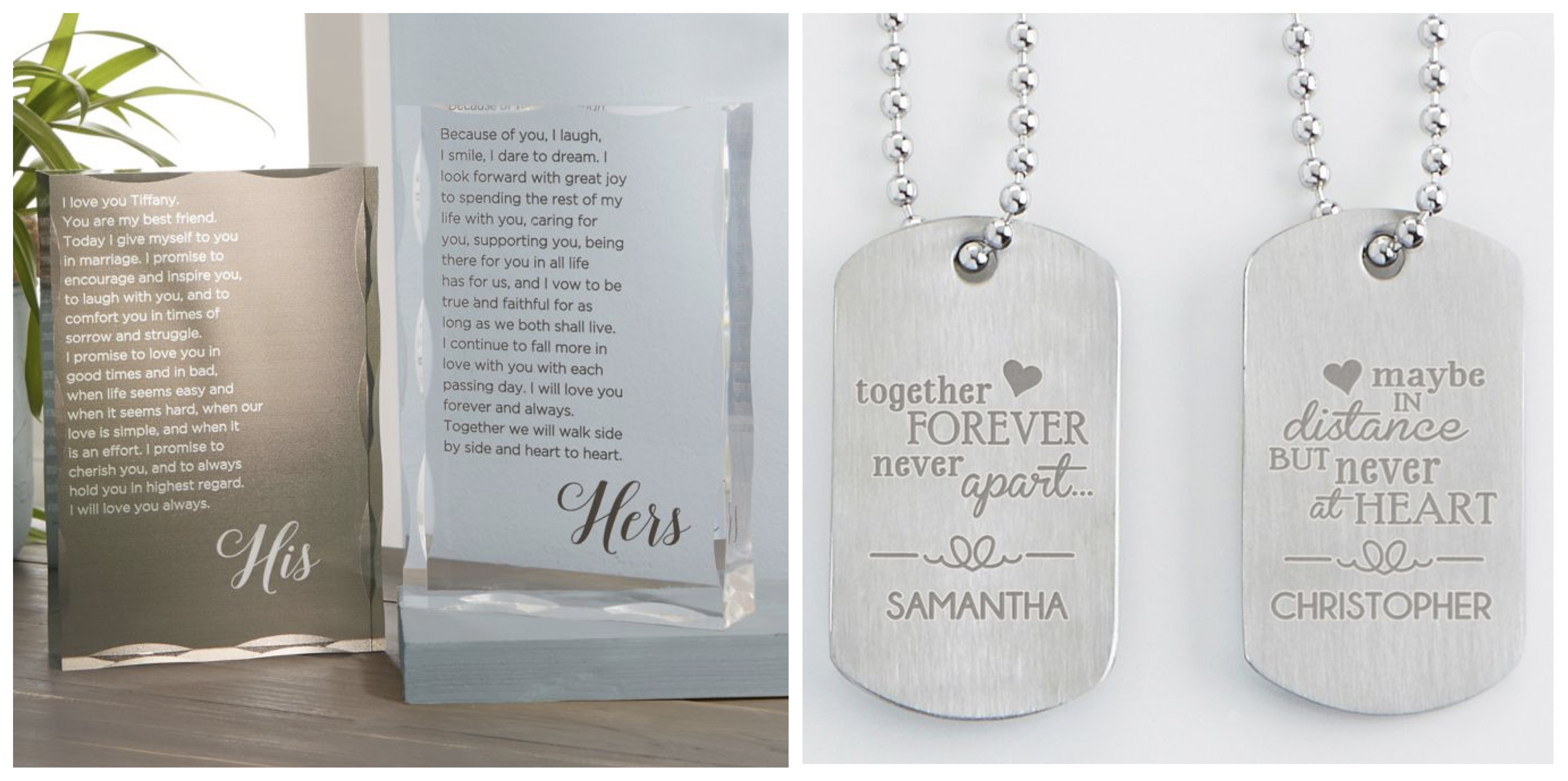His & Hers vows, dog tags, bathrobes. Bed, Bath & Beyond has many personalized ideas for couples.