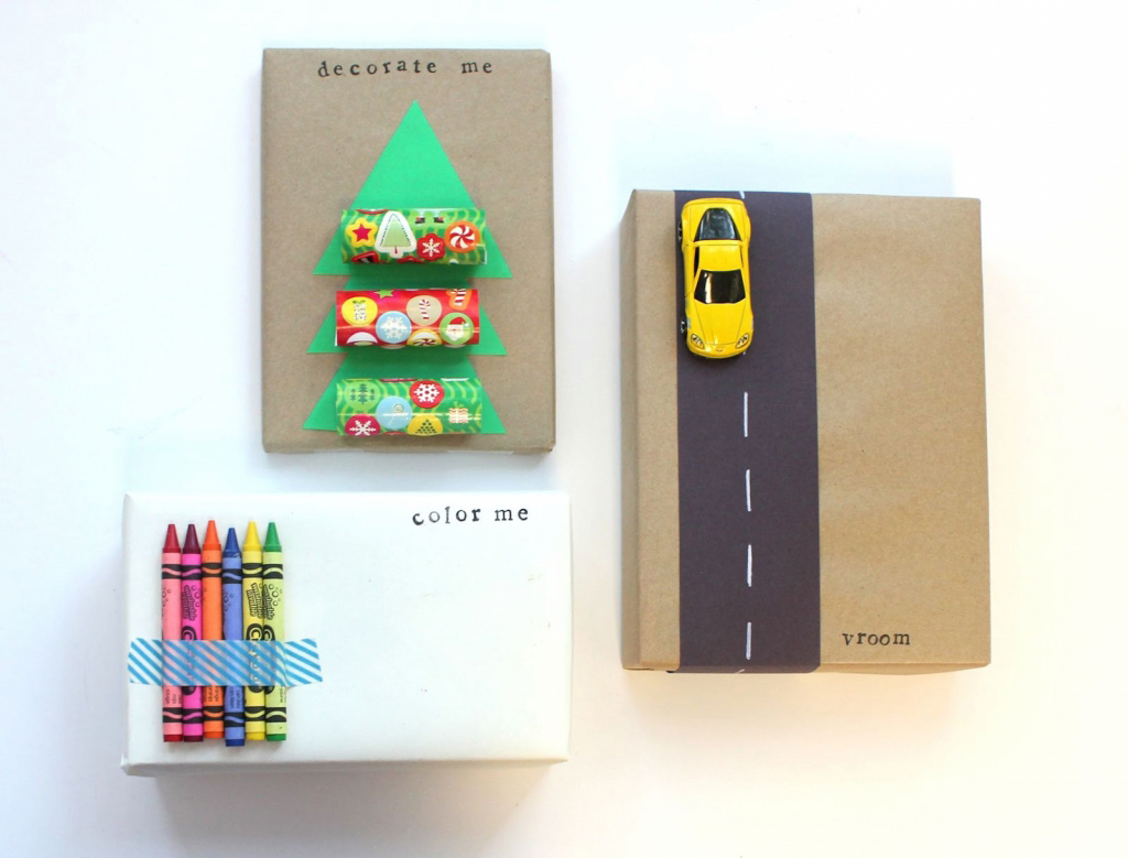 Is there a child in your life who is too excited to wait to open presents? Keep them preoccupied by having them make their own wrapping paper. Simple blank white or brown paper with some crayons is great for those impatient and excited children, and makes a cherished gift for grandma and grandpa.