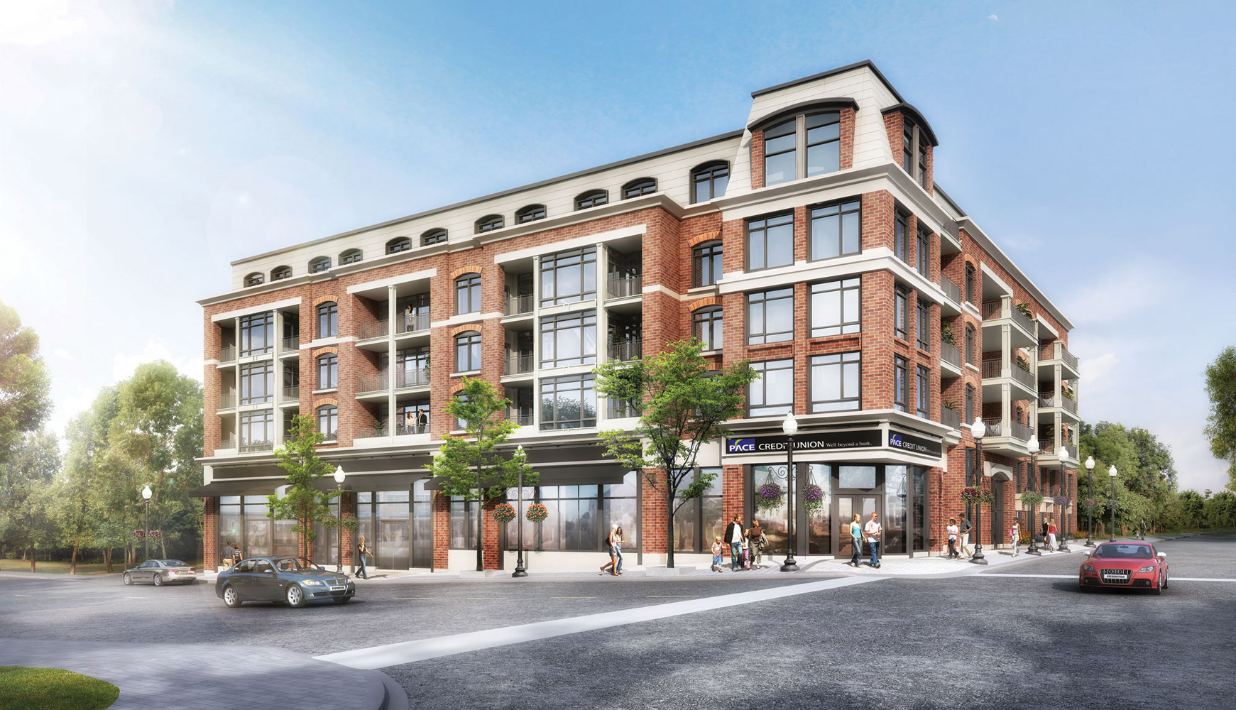 Pace on Main is a boutique condominium building in the heart of Stouffville’s lively downtown that’s within walking distance of this growing community’s many amenities. It is also Geranium’s first mid-rise condominium, featuring a brick and stone facade and unique window treatments.
