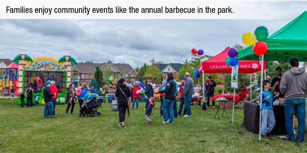 A few minutes’ walk from Trails is a large park, which has become a popular gathering place for residents and is the location for Geranium’s annual Community Barbecue for residents. This event is also the start of the