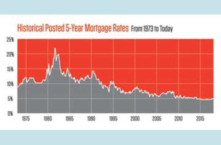Keep in mind, too, that in real estate, everything is relative. Looking at Canadian mortgage rates over the past four decades, our rates have remained amazingly low in comparison. Posted five-year mortgage rates peaked to double digits in the 1980s (when they reached over 20 per cent at one point) and the early 1990s. At that time, economic experts believed that we would never experience single-digit rates again.