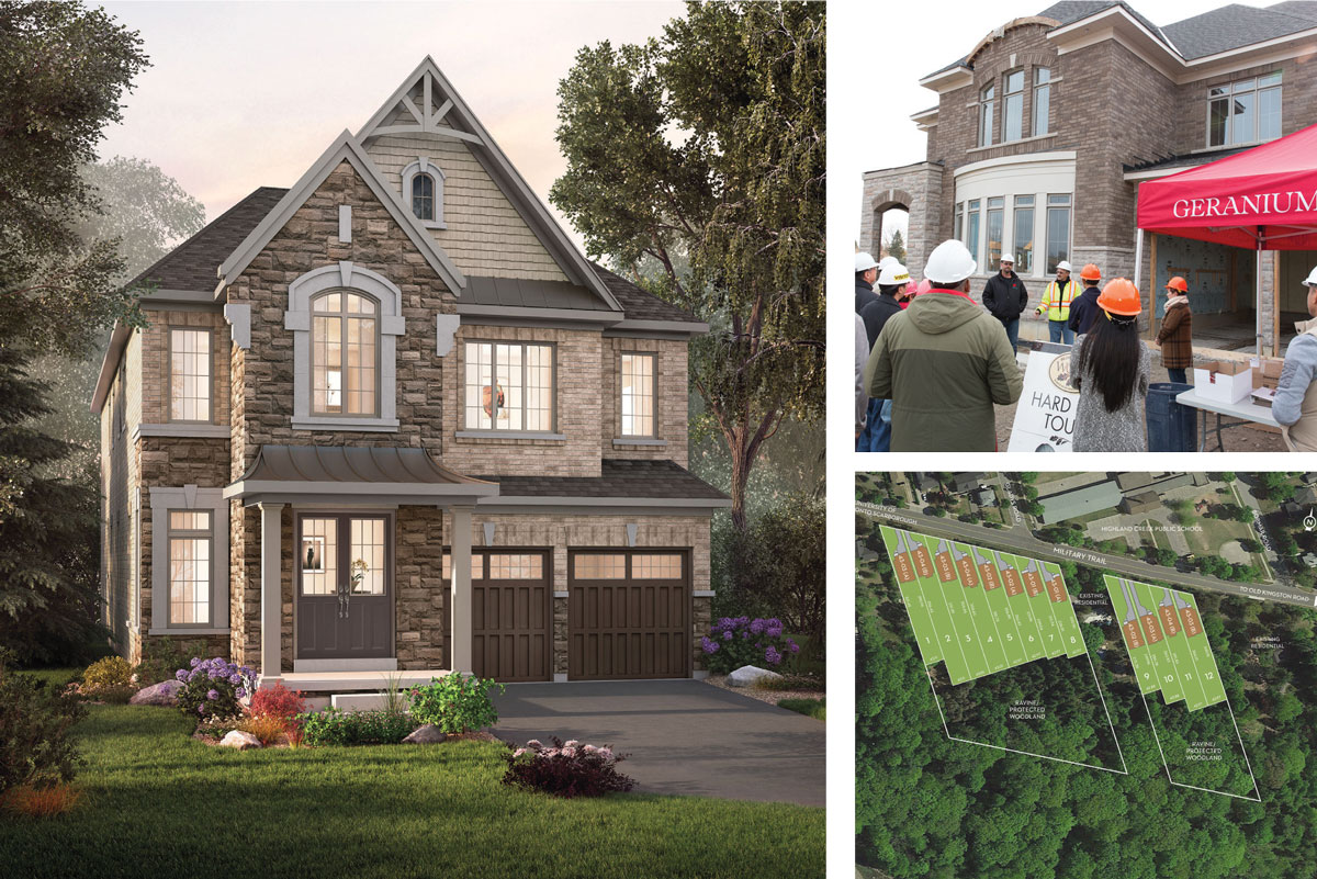GERANIUM HOMES recently introduced Twelve on the Ravine, a limited collection of executive residences backing onto the natural setting of Highland Creek ravine in Scarborough. To set the stage for prospective buyers, the award-winning home builder invited preview registrants to attend a special Hard Hat Tour through a home under construction at a similar Geranium community. The tour took place in a 4,320-sq.-ft. home in the sold out Bloomington Woods neighbourhood, just north of Stouffville.