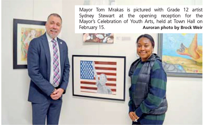 The conversation starter is entitled “AmeriKKKA” and is now on display at Town Hall as part of the Aurora Cultural Centre’s Mayor’s Celebration of Youth Arts (MCOYA), which formally opened last Wednesday, February 15, at the Centre’s temporary gallery space at the seat of government.