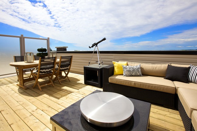 Buyers may choose from the two designs in the Chicago Series of back-to-back and two layouts in the Gooderham Series of stacked units, which range from 1,401 to 1,639 square feet, priced from the $380,000s. Every home includes a bright and spacious Great Room with 10-foot ceiling heights and large windows; two bedrooms; and two bathrooms. Plus a bonus ground level recreation room that could become an exercise room, studio or home office. A large rooftop terrace measuring between 279 and 380 square feet provides a top floor outdoor oasis. Parking for two cars is accommodated in the single-car garage and driveway. Low monthly maintenance fees are just $89.