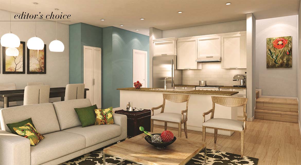 New homebuyers are embracing Geranium’s exciting and affordable alternative to condo apartment ownership and choosing among the back-to-back and stacked units with living areas that people most value in a home. Plans range in size from 1,401 up to 1,639 square feet and every home includes a spacious rooftop terrace plus ground floor bonus recreation room that can easily be a home office, an exercise area, or a games room. Prices begin in the $360,000s.