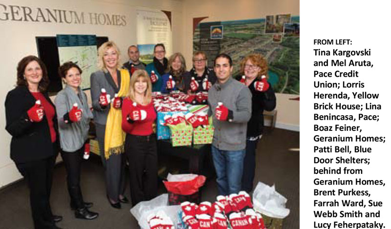JUST IN TIME FOR THE COLD WEATHER, GERANIUM HOMES AND PACE CREDIT UNION HAVE joined together to donate 300 pairs of the Official Canadian Olympic Team Red Mittens to York Region area shelters. Recipient agencies are Blue Door Shelters, Yellow Brick House and Sandgate Women’s Shelter.